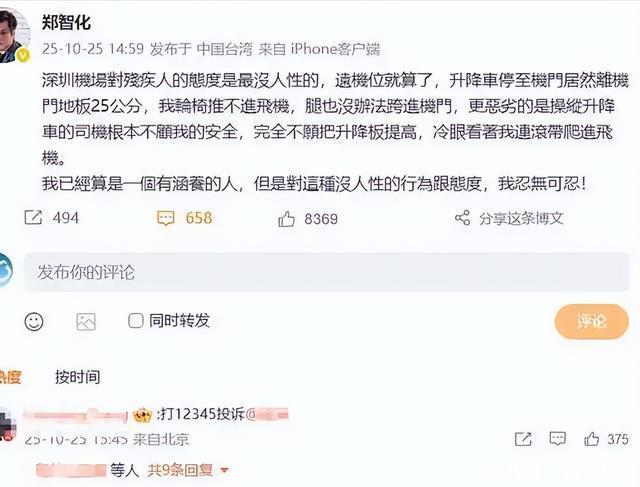 他对自己说:“身残心不要残”。 每次看到他拄着双拐站到舞台上,唱起《水手》,这妥妥就是正能量逆袭的代表啊。 然而这么多年过去,这位励志歌手如今64岁的年纪却塌房了。 事情的起因就是郑智化突然在网上发布了一则对于深圳机场的控诉。