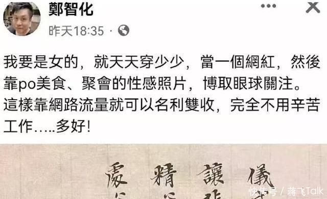 但没想到如今在大陆只要是公共空间,几乎都有监控的存在,谁对谁错,其实一目了然。 曾经的郑智化在社交媒体发布了一条这样的分享。 主要内容就是如果他是一个女人,该有多好,可以不劳而获,就可以获得光鲜亮丽的生活。 表面来看他是带着羡慕的语气上,然而实际上却是满满的对女性的不尊重和歧视。